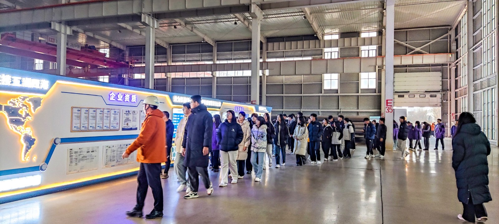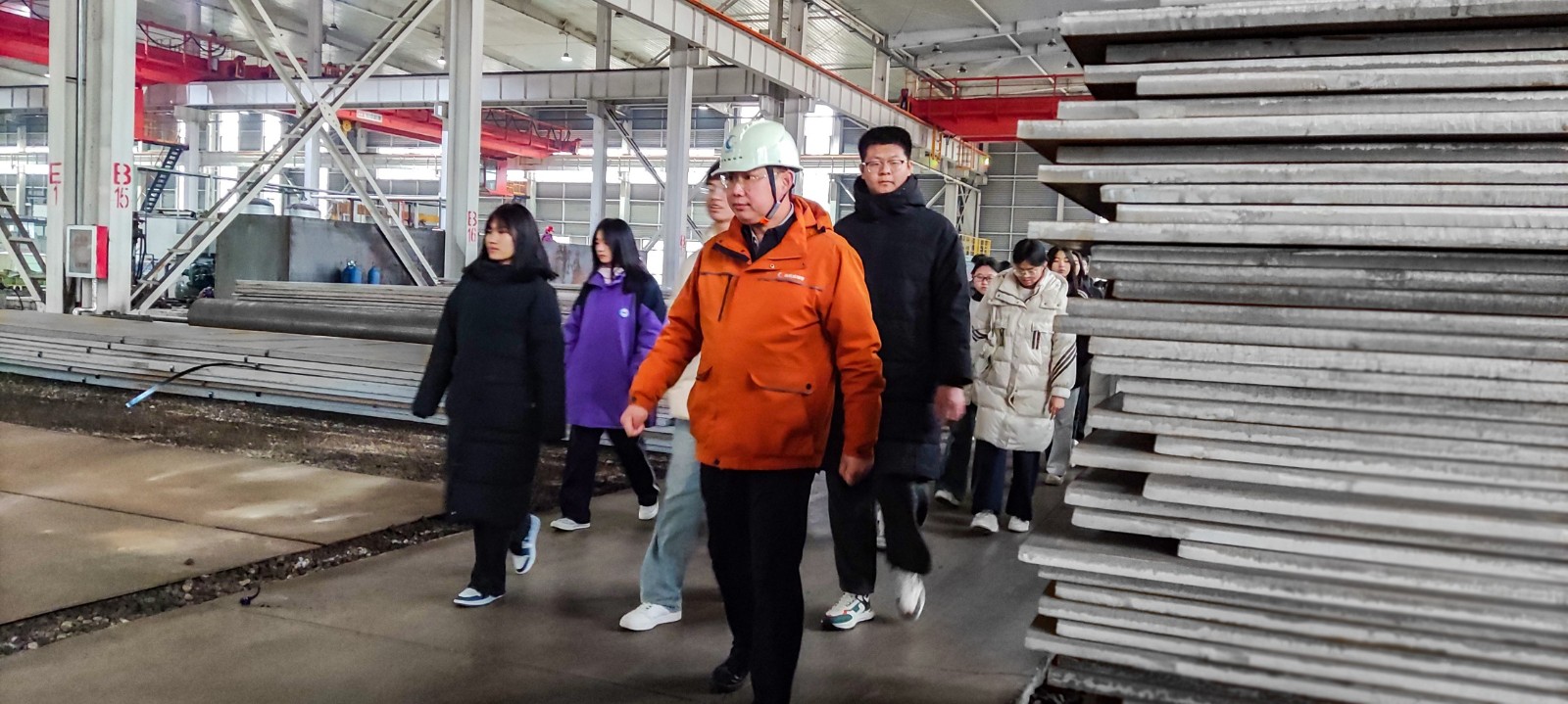 公司副总经理张胜勇全程陪同,带领师生沿安全通道参观生产全流程。他以通俗易懂的语言,详细讲解新能源管道的智造工艺、核心技术及应用场景,从原料加工到智能成型,从质量检测到绿色环保,让学生们直观感受现代制造业的科技魅力与匠心精神。