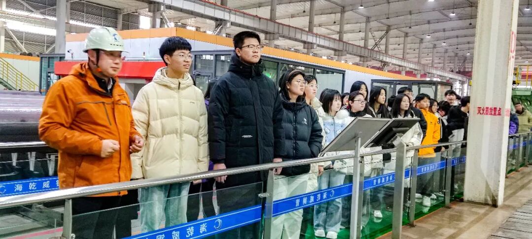 2026 年 2 月 28 日下午,盐山中学五十余名学生在老师的带领下,走进友发集团河北海乾威钢管有限公司,沉浸式探访新能源管道生产线。